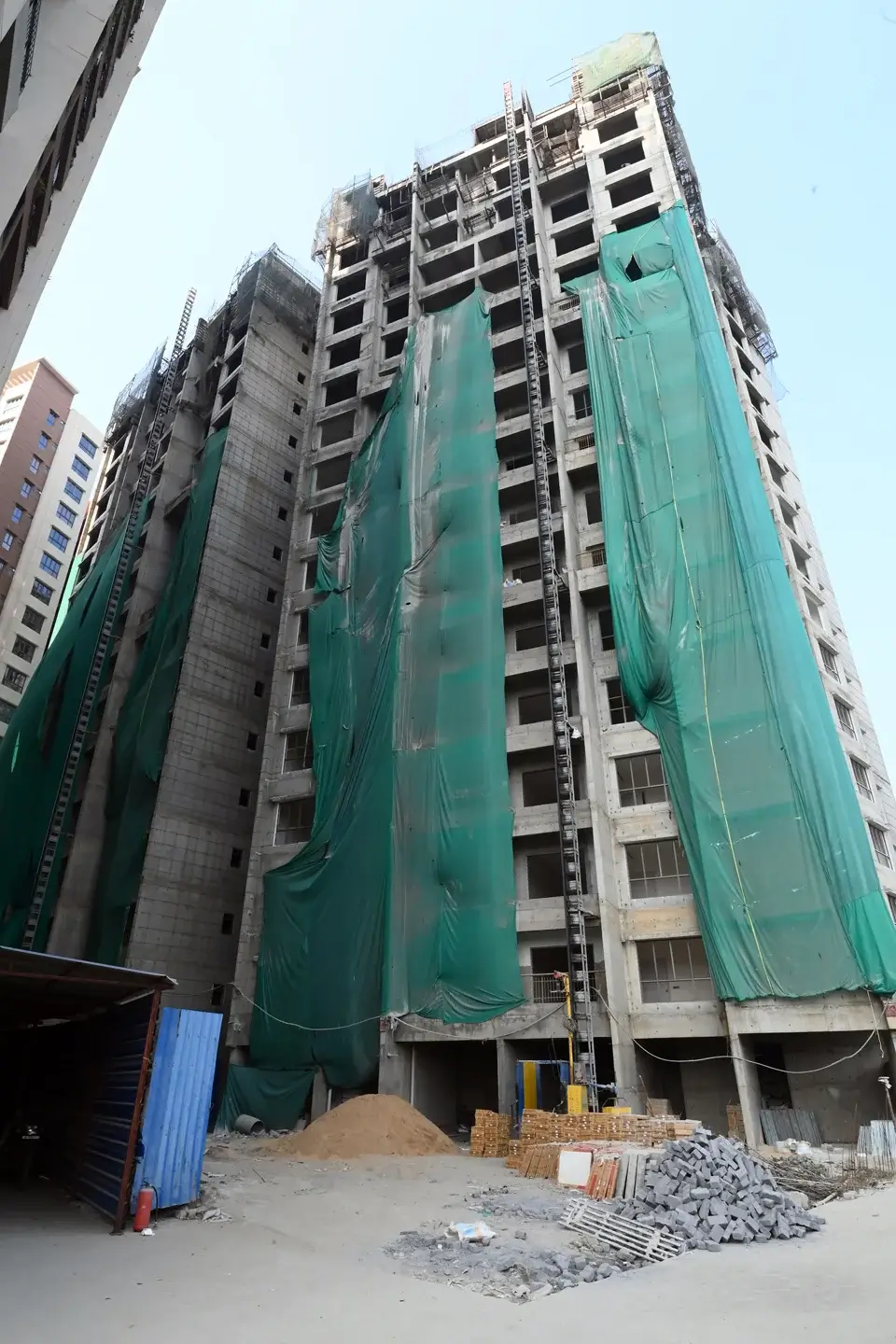 RCC wall overlaid with white cement putty